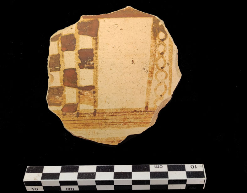 Fig. 4. Sherd decorated with chequers and triglyph that probably came from a deep bowl